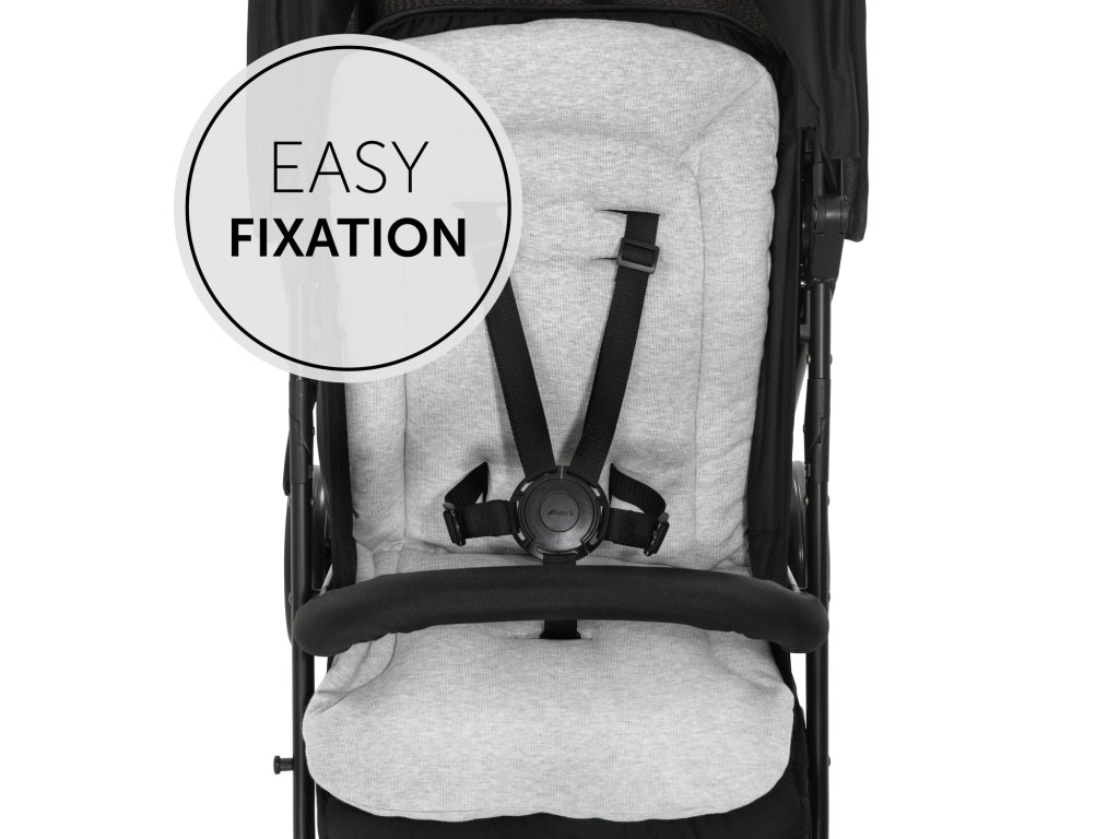 ĽAHKÁ INŠTALÁCIA // Podložku je možné veľmi ľahko pripevniť do kočíka. Sofistikovaný dizajn prichádza zo 7 otvormi pre 5-bodový bezpečnostný pás s rôznou výškou.