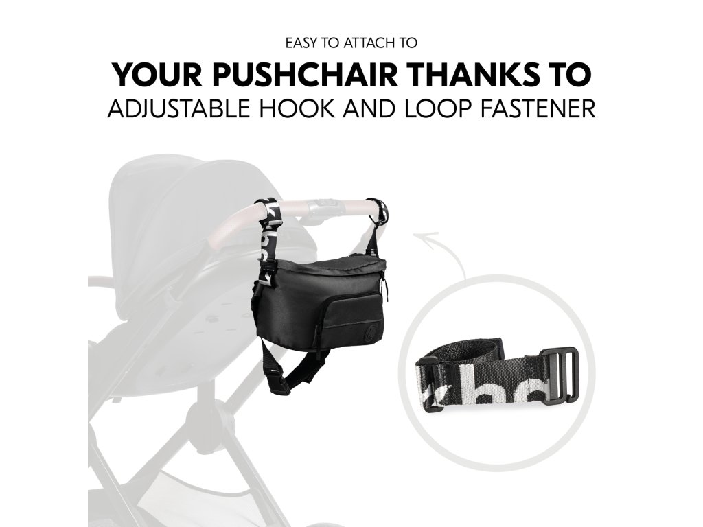 ĽAHKÉ A RÝCHLE // Organizér sa veľmi ľahko a rýchlo pripevní na kočík vďaka nastaviteľným popruhom na suchý zips. V prípade potreby možno upevňovacie popruhy odňať.