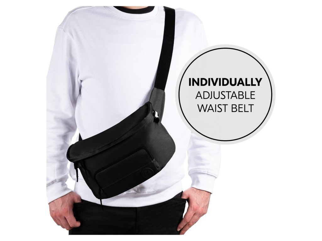 NASTAVITEĽNÝ PÁS // Ak chcete tašku nosiť ako tašku cez rameno alebo ako ľadvinku okolo bokov, stačí nastaviť široký popruh a môžete vyraziť.