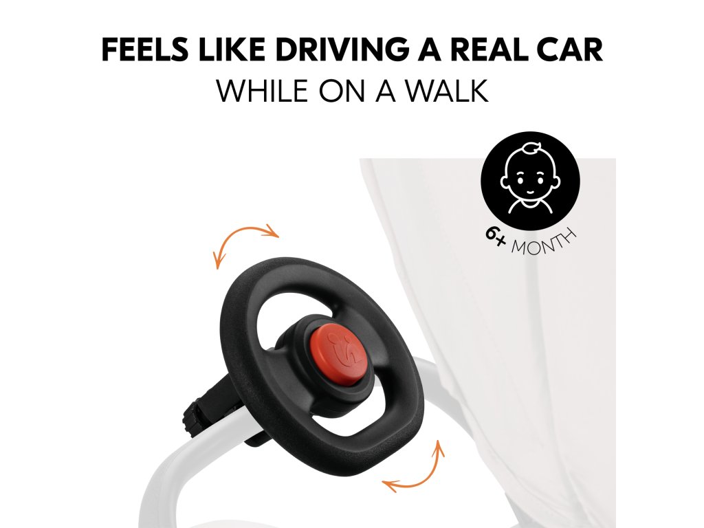 Vrr vrr, tú tú! Na zábavné prechádzky s vaším malým milovníkom áut. Volant kočíka premení kočík na malé autíčko. Vy šoférujete, váš malý vodič riadi.