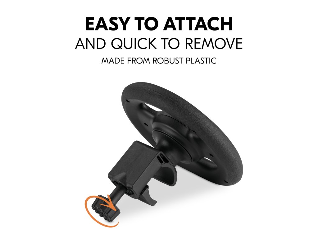 Nechcete mať volant stále na kočíku? Žiadny problém, robustný plastový volant sa dá rýchlo a jednoducho pripevniť a rovnako rýchlo aj odňať. Presne tak, ako ho potrebujete.