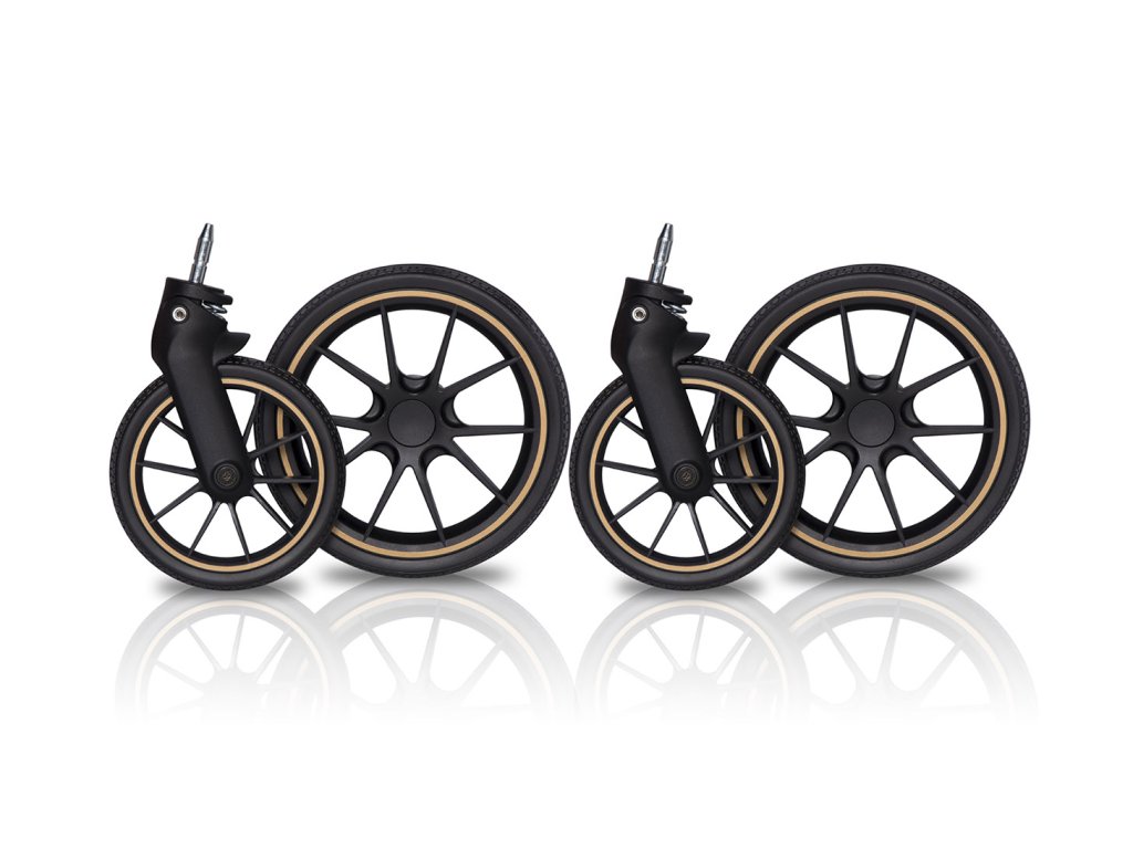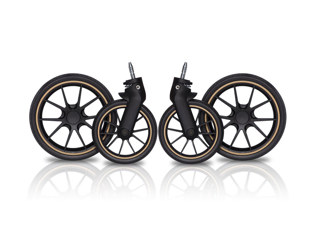 Jednoduchá inštalácia: Montáž týchto kolies je veľmi jednoduchá a nevyžaduje žiadne nástroje. Kolesá sú pripravené na okamžité nasadenie na kočík, čo uľahčuje prechod medzi rôznymi typmi povrchov.