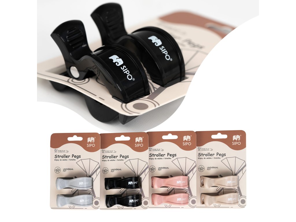 Univerzálne klipy SIPO sú určené na každodenné použitie pri starostlivosti o deti – doma aj na cestách. Ich hlavnou funkciou je umožniť rýchle, bezpečné a stabilné pripevnenie ľahkých detských doplnkov k predmetom, ako sú kočíky, kolísky, autosedačky, cestovné postieľky, tašky alebo vysoké stoličky.