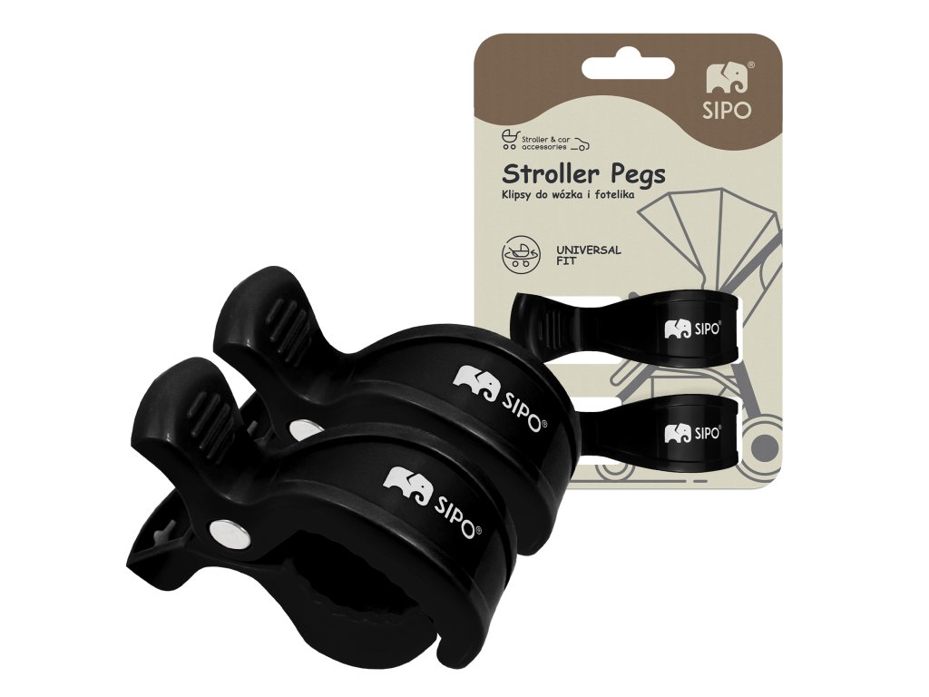 Sipo Klipy na kočík, 2ks, multifunkčné, čierna