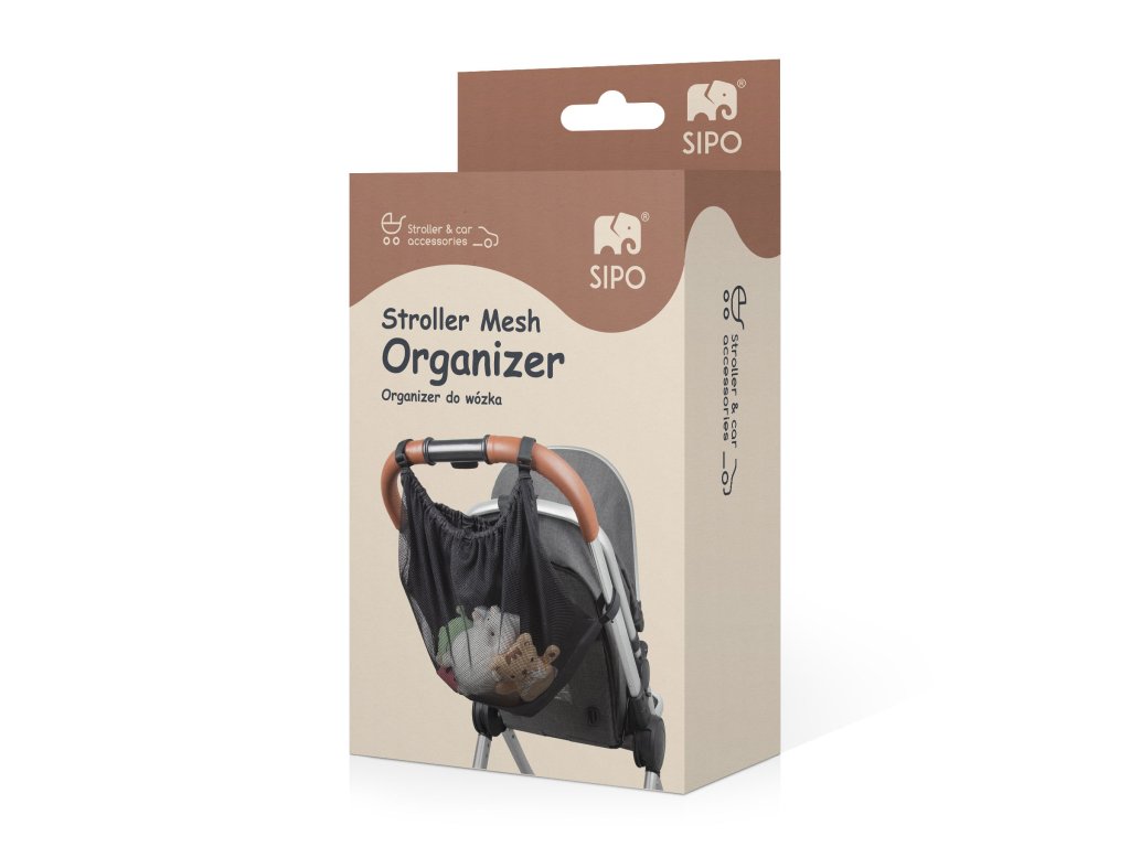 Sieťový organizér SIPO je určený na ukladanie a usporiadanie potrebných vecí počas prechádzok s dieťaťom. Je určený na použitie so športovými kočíkmi a detskými golfovými kočíkmi. Ideálny na krátke prechádzky, každodenné výlety a cestovanie s dieťaťom.