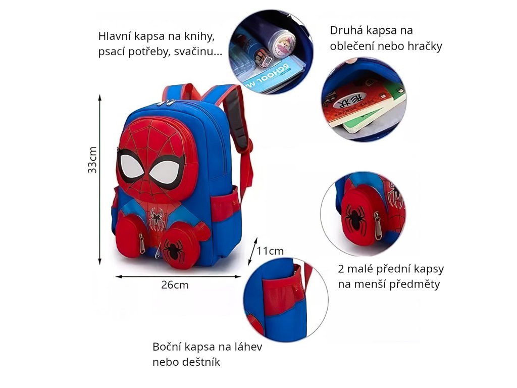 Detský batoh Spiderman s kapsičkami je ideálnym spoločníkom pre malých hrdinov na ceste do škôlky, školy aj na výlet.