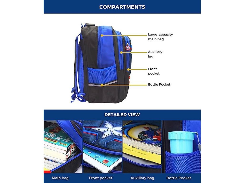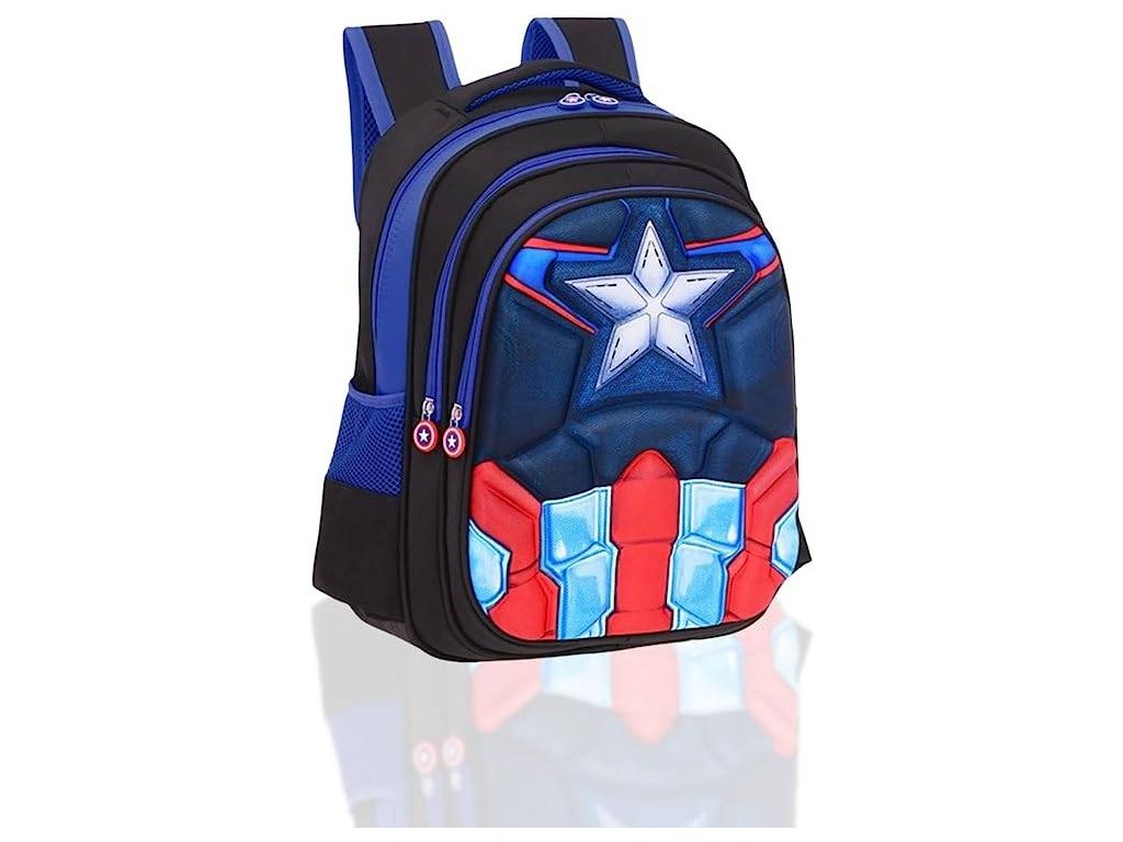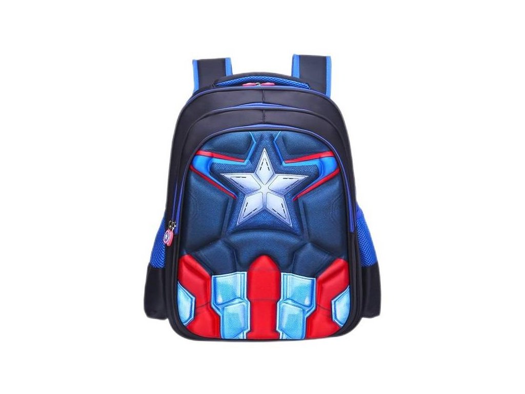 Školský detský batoh s motivom Avengers Captain America. Funkčný pohodlný batoh obsahuje tri vnútorné priehradky na zips. Z vonkajšej je veľké priestranné vrecko a po bokoch dve sieťované vrecká na fľašu s pitím. Vďaka vystuženému, profilovanému chrbtu a postrovanému ramennému popruhu je nosenie batohu veľmi pohodlné. Batoh je vyrobený z odolného materiálu s reflexnými prvkami pre väčšiu bezpečnosť.
