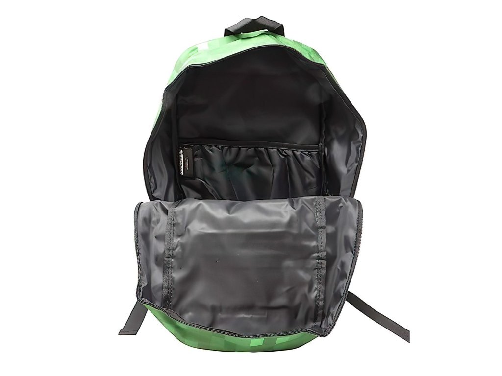 Školský detský batoh Minecraft. Funkčný pohodlný plecniak obsahuje dve vrecká na zips. Na bokoch je jedno sieťované vrecko na fľašu s pitím. Vďaka vystuženému chrbtu a polstrovaným nastaviteľným ramenným popruhom je nosenie batohu veľmi pohodlné. Batoh je vyrobený z odolného materiálu.