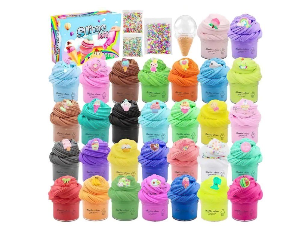 Tento Slime kit je vyrobený z bezpečných, netoxických materiálov, ktoré sú vhodné pre deti. Slizy sú vysoko elastické a príjemne mäkké na dotyk, čo poskytuje skvelý relaxačný efekt. Vďaka vysokej kvalite materiálov slizy zostávajú dlho pružné a nestrácajú svoje vlastnosti ani po opakovanom použití. Balenie obsahuje rôzne druhy slizu, vrátane tzv. "butter slime" s hladkou textúrou a pastelovými farbami, ktoré pripomínajú krémovú konzistenciu.