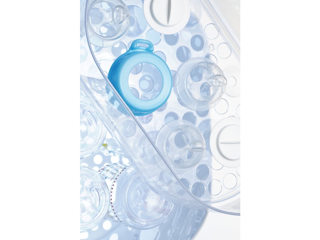 › Parný sterilizátor ponúka flexibilitu, pretože sa dá použiť aj bez stojana na fľaše pre cumlíky a príslušenstvo.