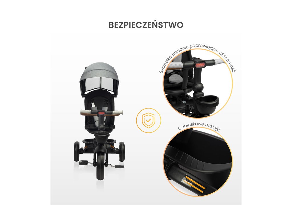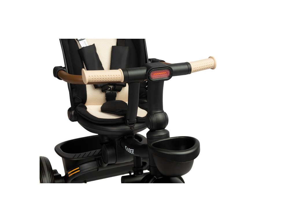 V kočíku Saber sú pohodlie a bezpečnosť prioritou. Trojbodové pásy a ochranná lišta zaisťujú bezpečnú hru a pokojný spánok dieťaťa počas prechádzok. Reflexné nálepky a predné LED svetlo zlepšujú viditeľnosť počas večerných prechádzok.