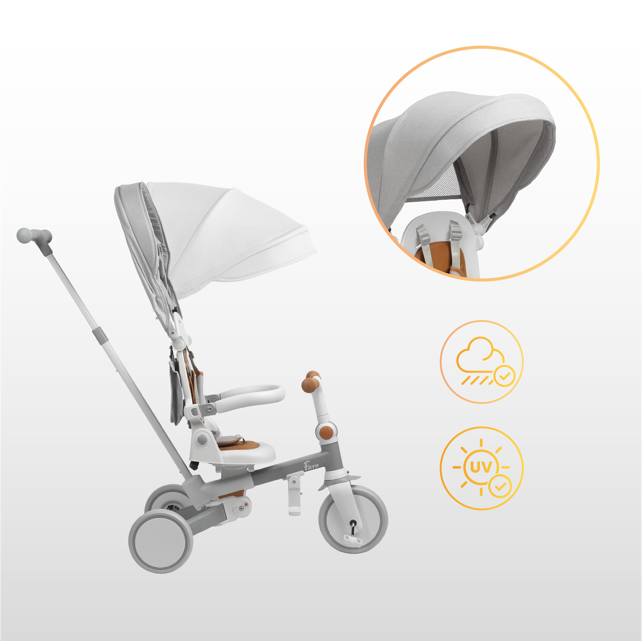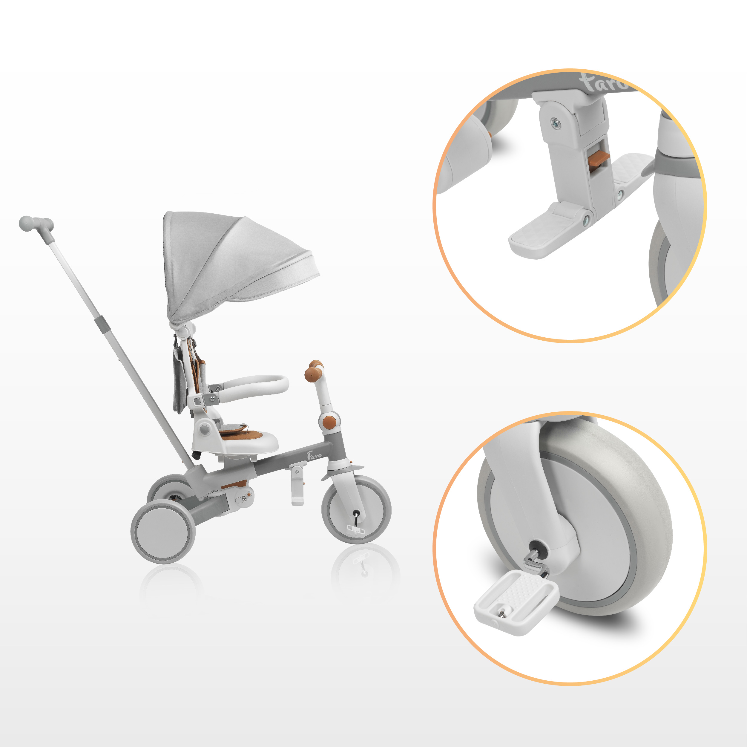RASTIE S DIEŤATOMVďaka modulárnemu dizajnu trojkolka rastie s dieťaťom a je určená pre batoľatá od 18 mesiacov do 6 rokov. Faro je vybavená pedálmi pre staršie deti, zatiaľ čo odnímateľná opierka nôh určená pre mladšie deti umožňuje odpočinok počas prechádzok. |