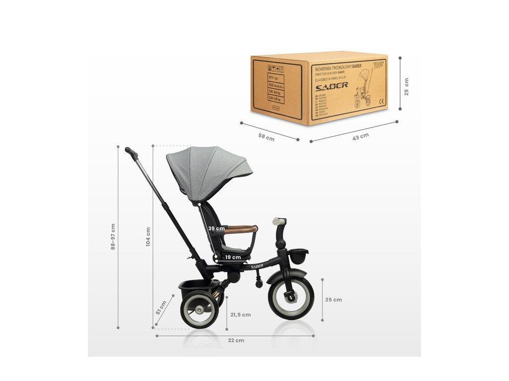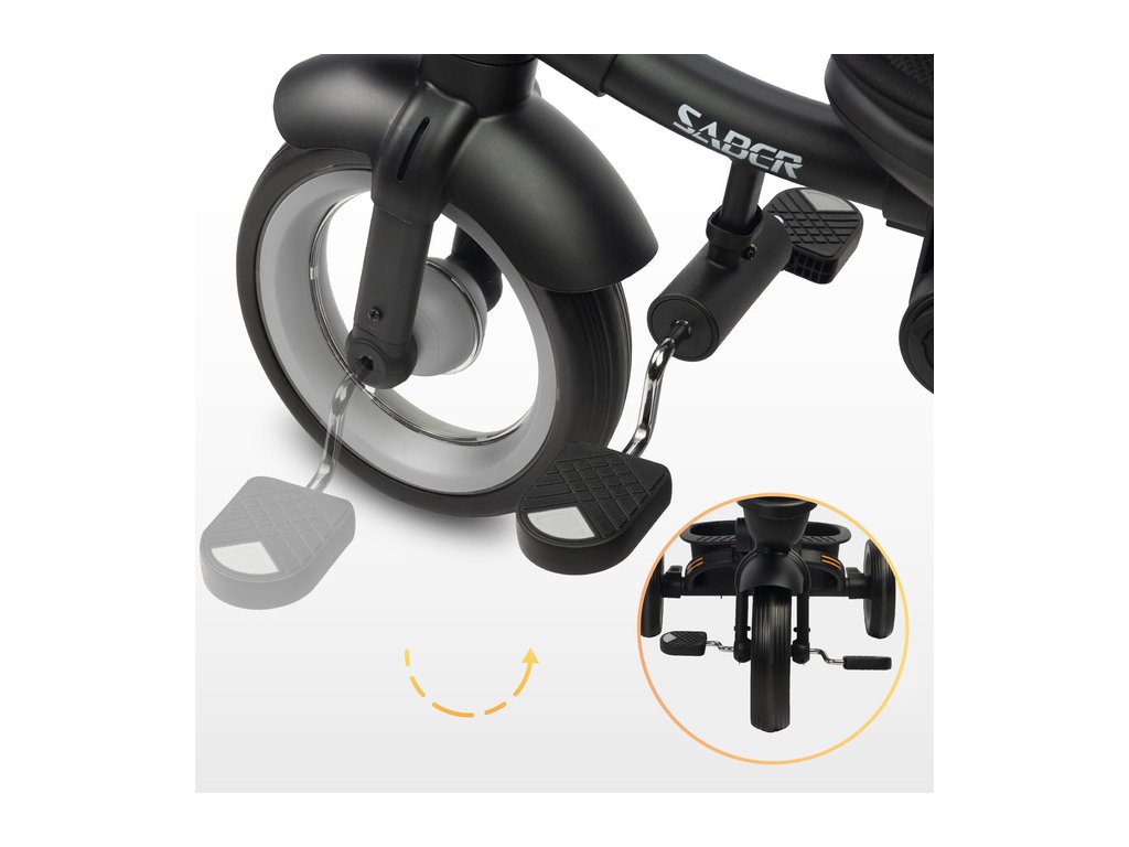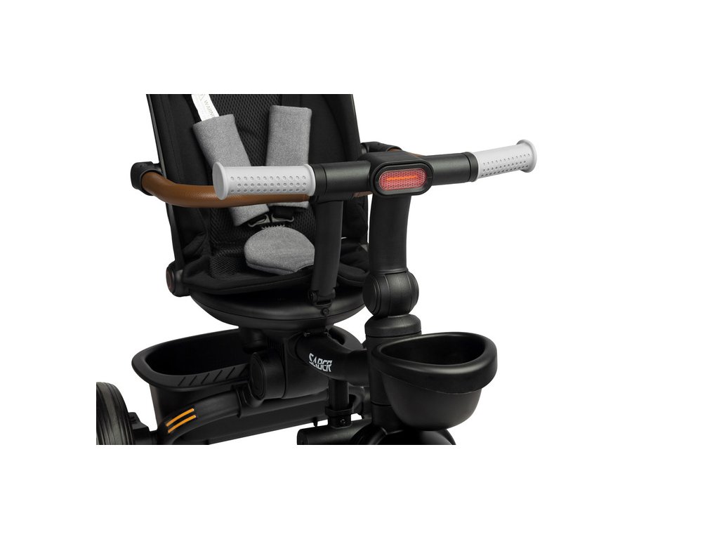 V kočíku Saber sú pohodlie a bezpečnosť prioritou. Trojbodové pásy a ochranná lišta zaisťujú bezpečnú hru a pokojný spánok dieťaťa počas prechádzok. Reflexné nálepky a predné LED svetlo zlepšujú viditeľnosť počas večerných prechádzok.