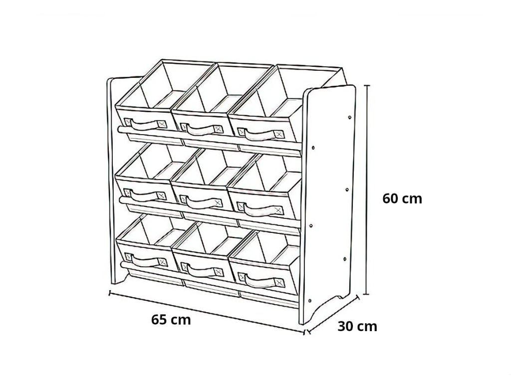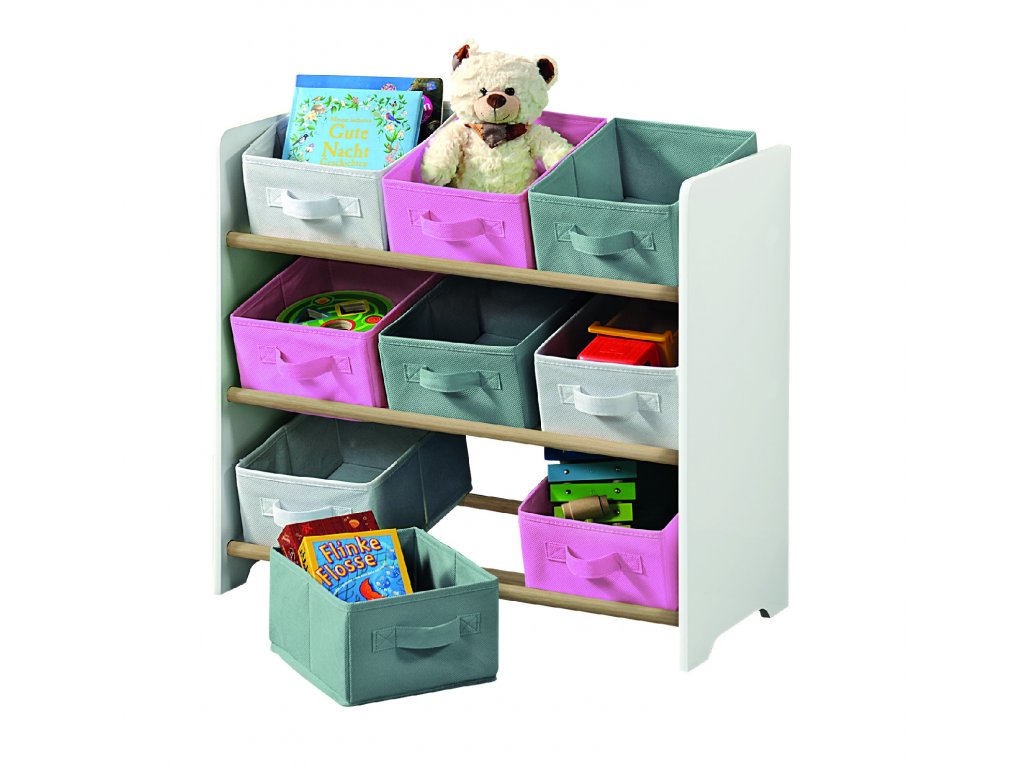 Organizér na hračky v nádhernom ružovosivým prevedení. Nudné upratovania hračiek sa môže stať zábavou a hračky si vždy nájdu svoje miesto v detskej izbe. Organizér je ideálny na uskladnenie hračiek, obsahuje 9 plátených boxov, riešených tak, aby si deti mohli ukladať hračky samy.