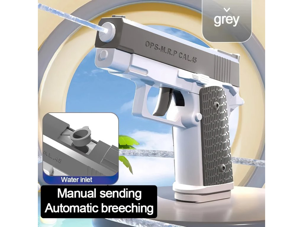 Manuálna vodná pištoľka MINI v sivom prevedení je ideálnou voľbou pre malých dobrodruhov, ktorí chcú mať osvieženie vždy poruke.