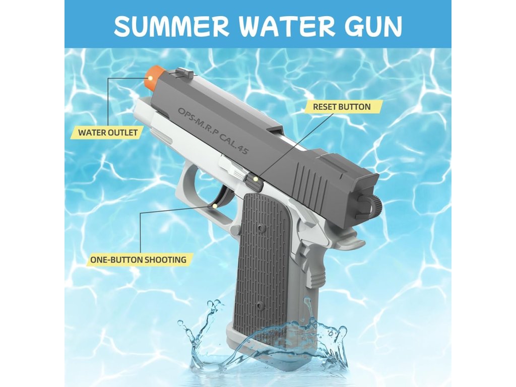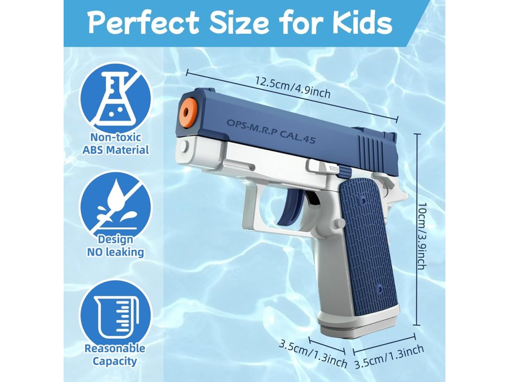 MINI pištoľka je perfektná pre deti od 5 rokov a poslúži aj ako originálny doplnok na letné oslavy alebo vodné bitky. Je bezpečná, jednoducho ovládateľná a navyše vyzerá naozaj štýlovo.