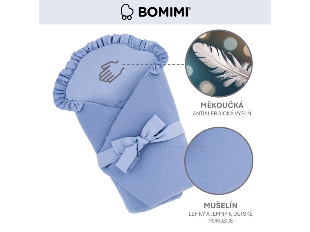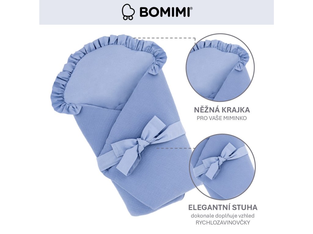 Bomimi Zavinovačka mušelínová s mašľou, MODRÁ